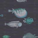 蓝色 海洋动物 卡通鱼 壁纸壁布 墙纸 海洋系列壁纸