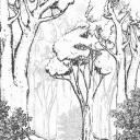 现代手绘黑白森林壁画 卡通儿童壁画