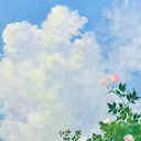 油画风景唯美天空花朵装饰画 日式装饰画
