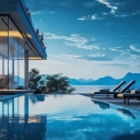 湖边旁边的别墅游泳风景 别墅外景