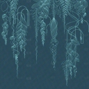 蓝色葡萄藤爬藤植物线条壁纸壁布墙布 植物壁画