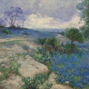 紫色花甸风景油画壁纸 欧式风景油画
