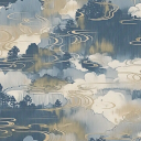 无缝新中式浅蓝白色山水纹理酒店轻奢地毯