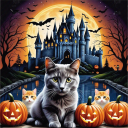 美式壁纸 万圣节主题壁纸 月亮 城堡 蝙蝠 南瓜灯枯树