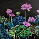 中式挂画 粉笔画 黑板涂鸦 荷花粉笔画 手绘荷花 儿童绘画素材