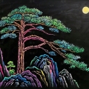 中式挂画 迎客松粉笔画 手绘迎客松 儿童绘画素材 粉笔画 黑板涂鸦
